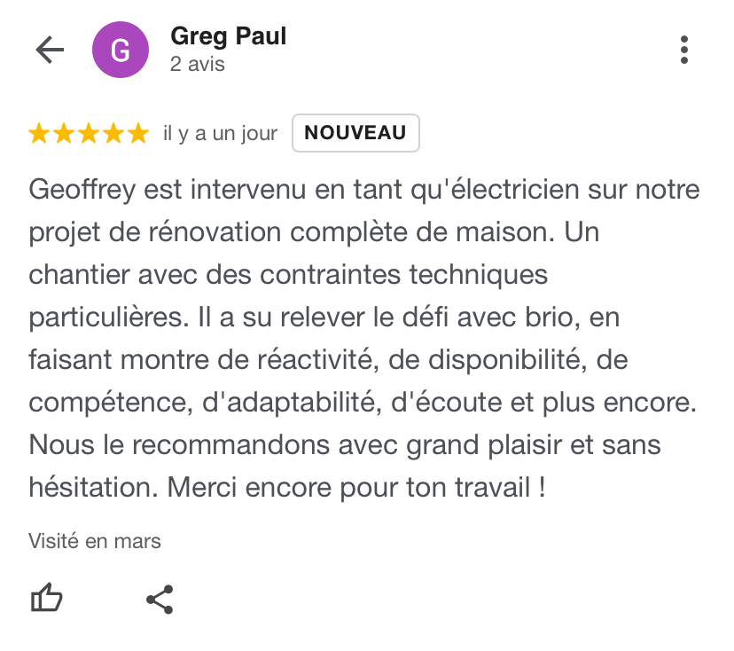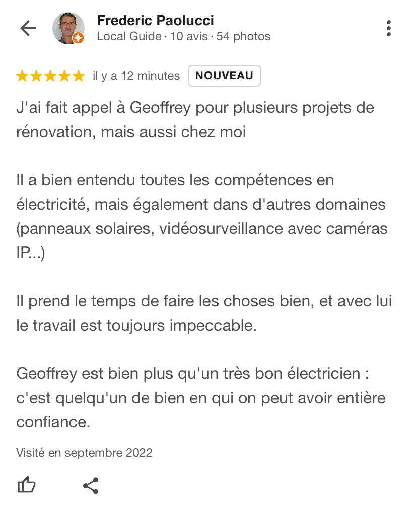 Notre équipe est reconnue pour son savoir-faire en électricité générale, son cœur de métier, sur des projets résidentiels ou en petit tertiaire. Mais d’autres activités telles que la domotique, les systèmes de protection et de sécurité, les installations photovoltaïques ou les bornes de recharge pour véhicules électriques, sont venues au fil des années compléter la gamme de services que nous pouvons vous proposer. En voici quelques exemples.