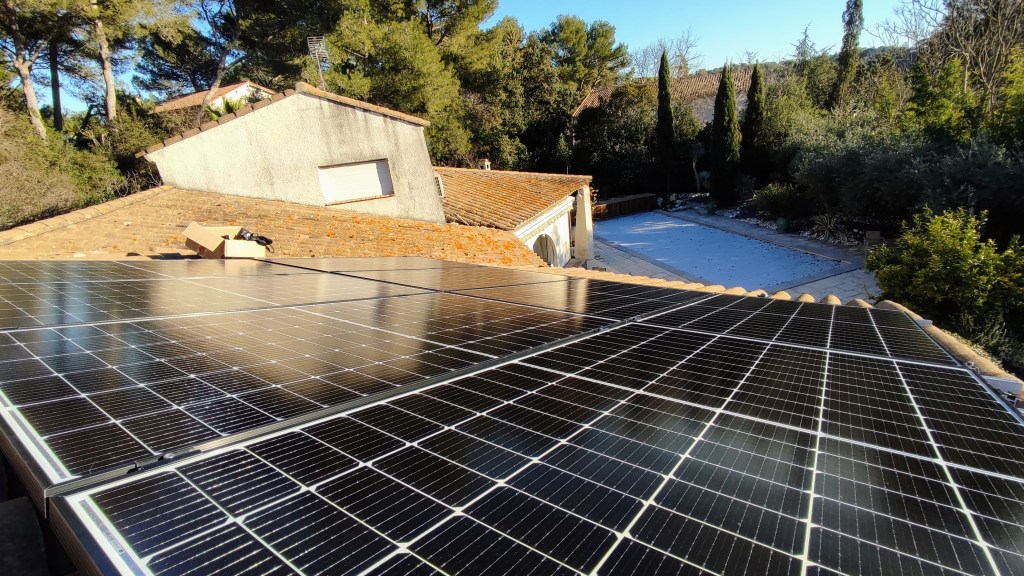 - Pose de panneaux photovoltaïques à Castelnau-Le-Lez (34). Production électrique 3kWc en autoconsommation (8 panneaux, env 15m²).