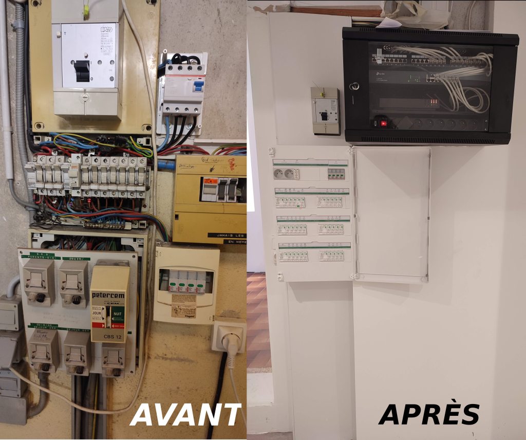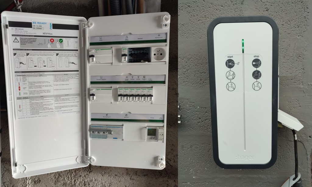 - Installation d’une borne de recharge en triphasé HAGER 22kW et réfection du tableau électrique (tertiaire) pour accueillir ses protections.